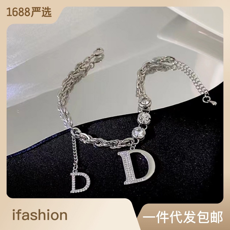 欧美跨境爆品双字母迪家轻奢手链情侣小众个性钛钢镶钻手饰配饰女