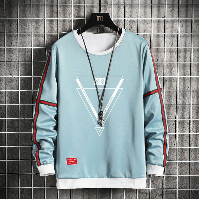 2023春秋季新款男士长袖恤宽松百搭青少年圆领打底衫男装上衣服