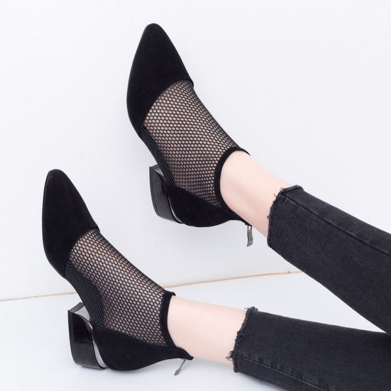 单鞋女2023春夏新款网纱镂空凉鞋百搭大码罗马鞋尖头平底鞋子女
