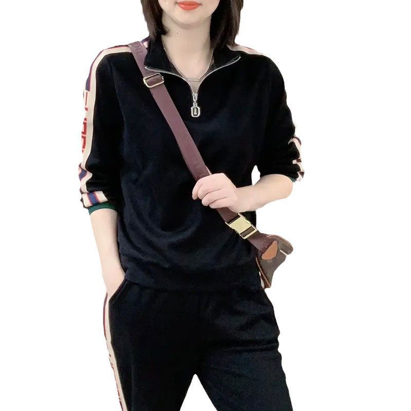 运动服套装女2023新款春秋休闲立领韩版百搭显瘦卫衣拼色两件套