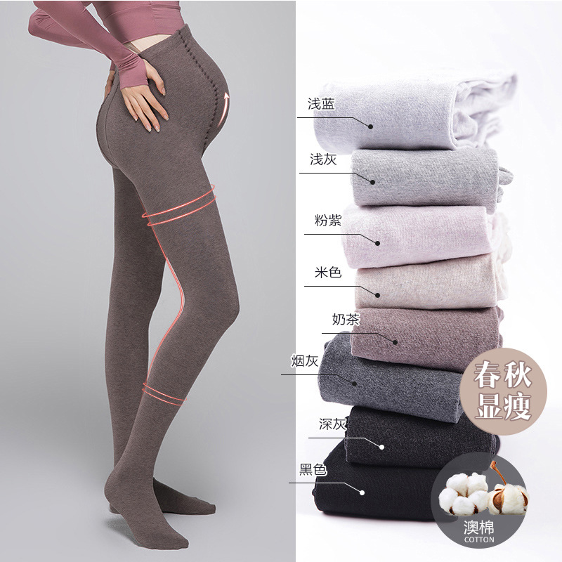 秋冬款加绒加厚天然澳棉绒托腹可调节孕妇装连袜裤踩脚袜裤打底