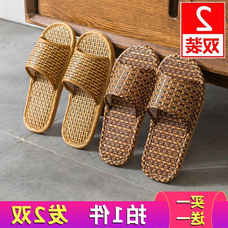 买一送一家用凉拖鞋男女夏季藤草编竹子室内家居家防滑软底亚麻拖