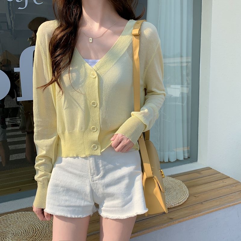 温柔风冰丝针织防晒衣女秋夏薄款开衫小外套学生韩版宽松长袖上衣