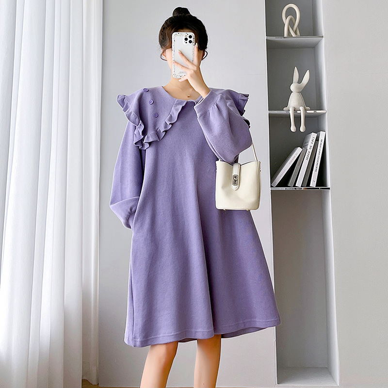 秋冬装大码孕妇装甜美宽松中长款连衣裙洋气娃娃领打底衫洋气卫衣