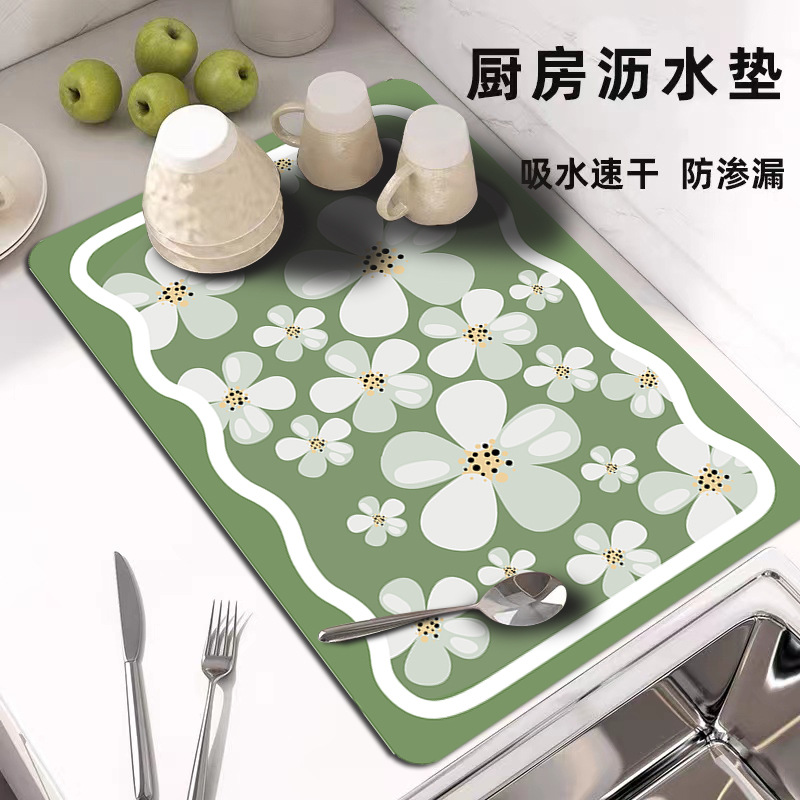 硅藻泥厨房沥水垫台面吸水桌垫家用杯碗碟干燥垫防滑防污餐桌垫子