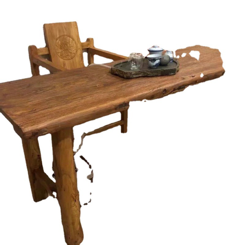 实木桌子老榆木门板桌复古怀旧吧台旧木板原木风化板茶桌茶台民俗