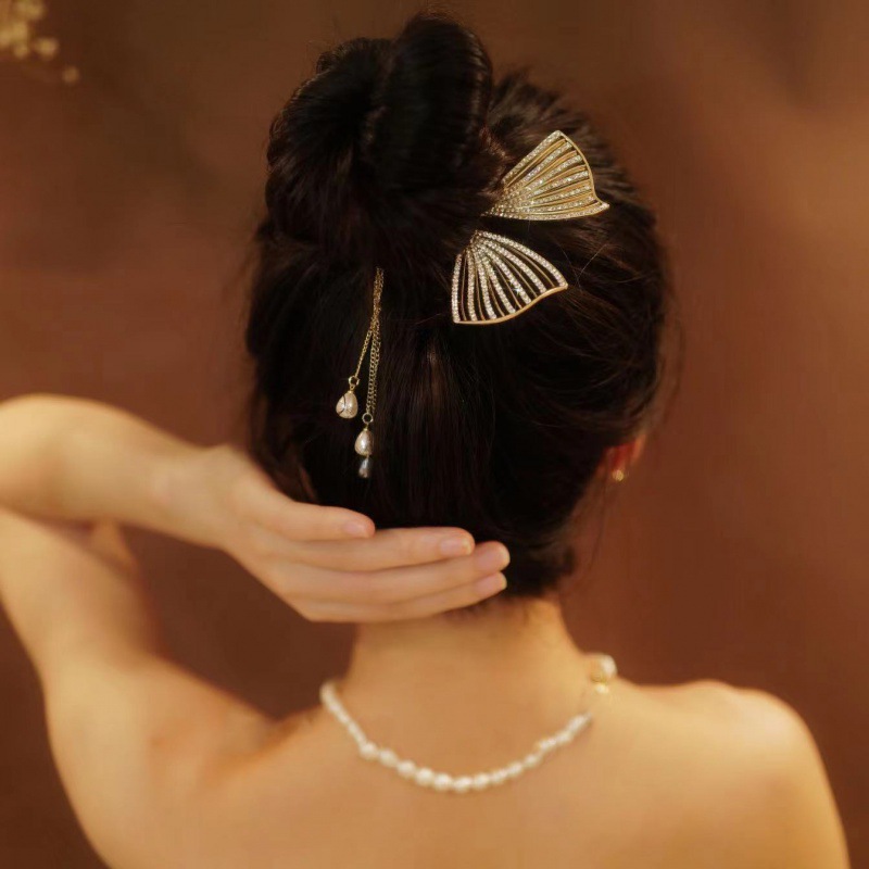 马尾固定高流苏珍珠丸子头抓夹扣发夹后脑勺爪夹头饰发卡厂家
