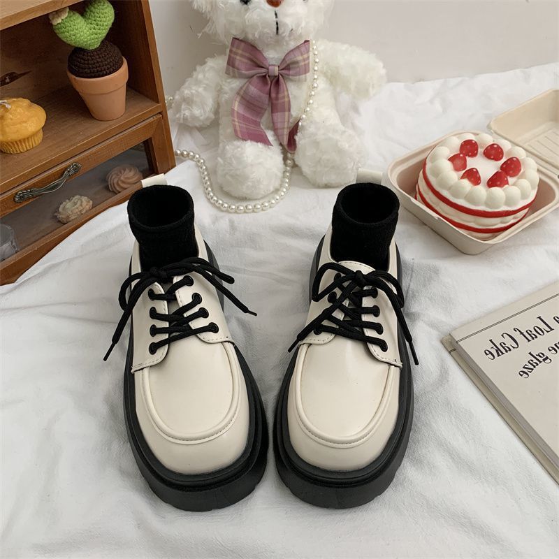 英伦风小皮鞋女粗跟厚底白色系带复古韩版单鞋子年秋季新款潮