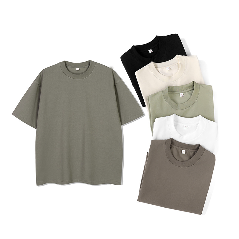 短袖T恤男2023夏季新款重磅260克双面纱纯色宽松落肩圆领百搭上衣